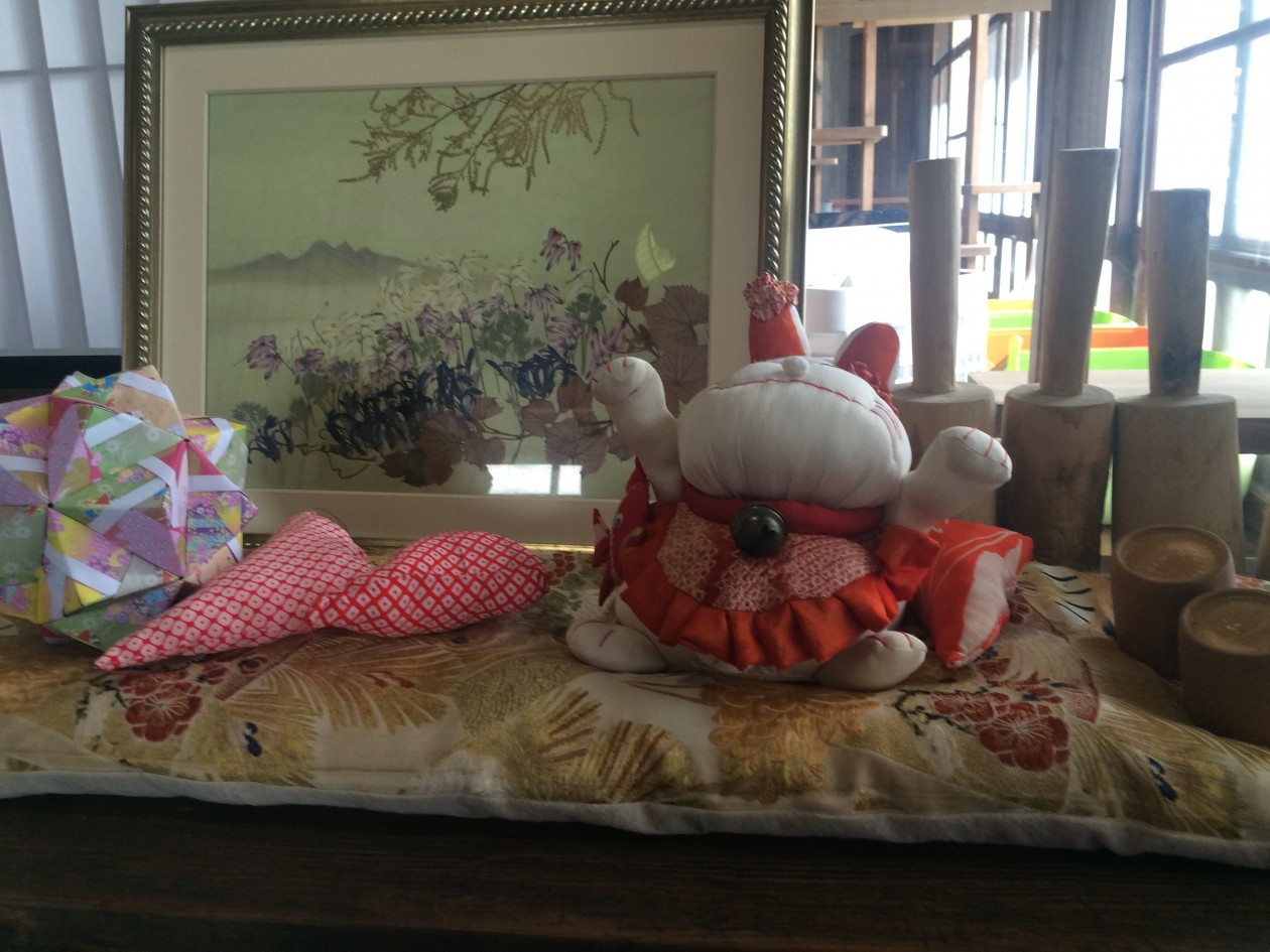 ちゃぶ台が可愛いなぁ。奥には年代物の家具も。