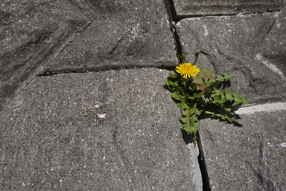石垣のすきまに根を張って、可愛い花を咲かせていました。
