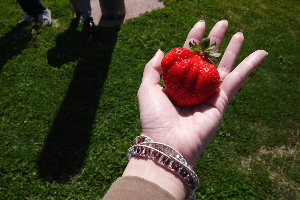 お、大きいなぁ。普通の苺の3個分くらいはありそう。