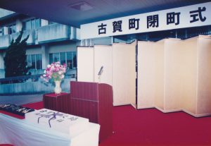 厳かな雰囲気のメイン会場は、どーんと「古賀町閉町式」と。