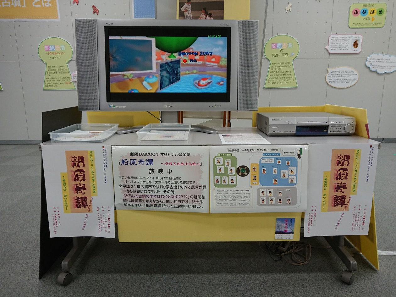 古賀市文化協会とコラボした「劇団DAICOONオリジナル音楽劇 船原奇譚 ~奇想天外 旅する娘~」のDVDを観ることができるようになっていました。