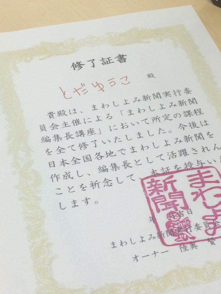 修了証書をいただきました。