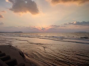 「古賀はこがんとこばい」花見海岸の日没の頃