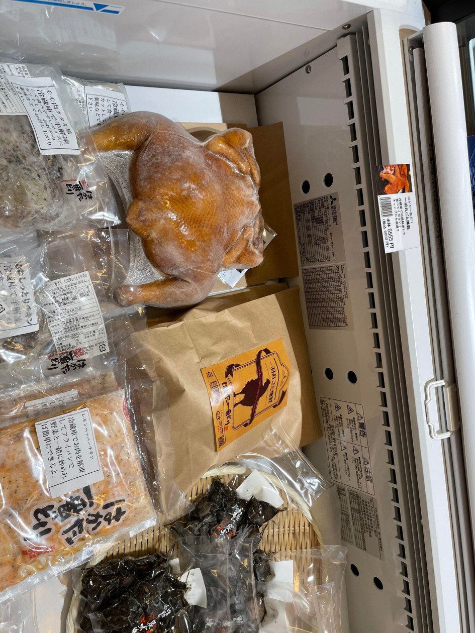 左奥に見えた、丸鶏の燻製が気になって、寄って撮影。すごーい迫力。