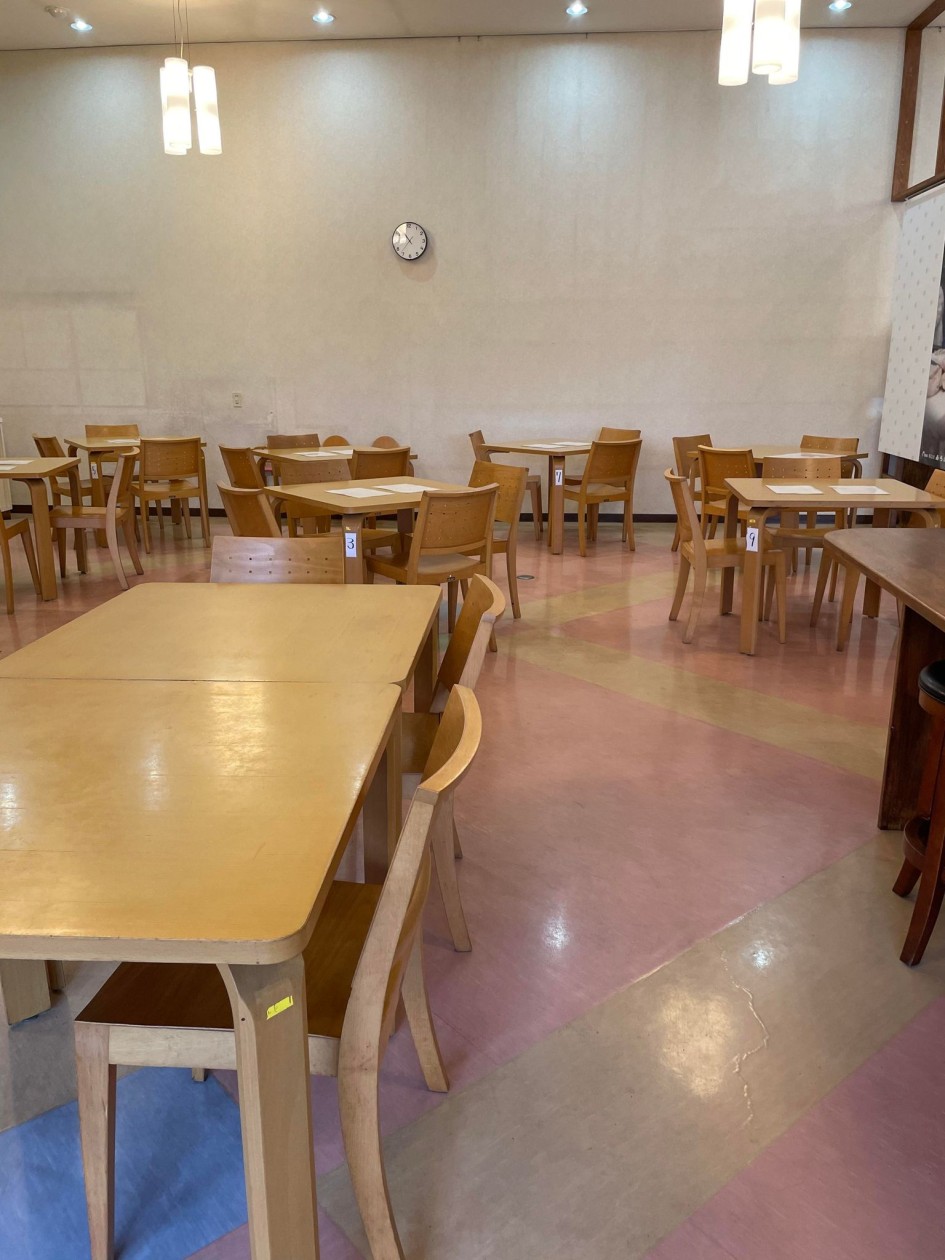 半分販売スペース、半分がイートインスペースです。(レジは中央)
