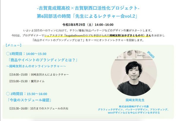 古賀竟成館高校×古賀駅西口活性化プロジェクト【第5回部活の時間「先生によるレクチャー会vol.2」】プロデザイナー岡崎友則先生のお話