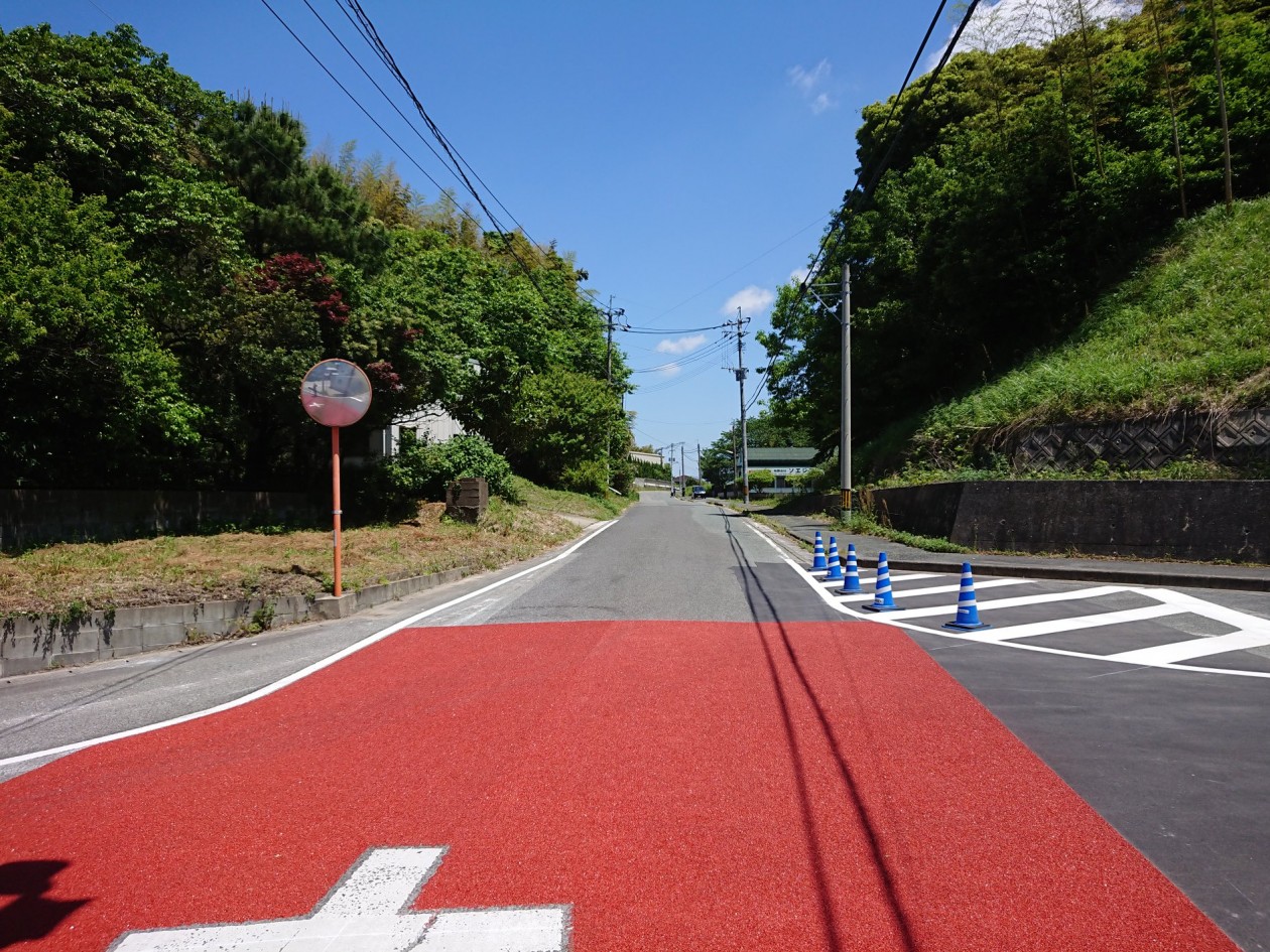 (略)昭和3年にも山をけずり道幅を拡げまっすぐにする工事が進められ今のような道になりました。この工事はたいへんな難工事で完成まで十年もかかったそうです。