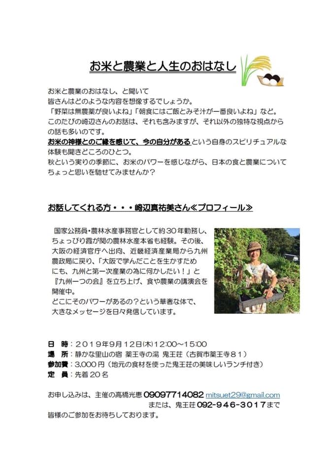 鬼王荘さんで、「お米と農業と人生のおはなし」があります【9月12日】